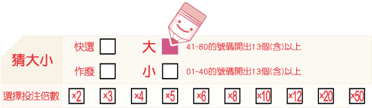 「猜大小」玩法您只需依您對獎號的預測選擇猜「大」或是猜「小」。
